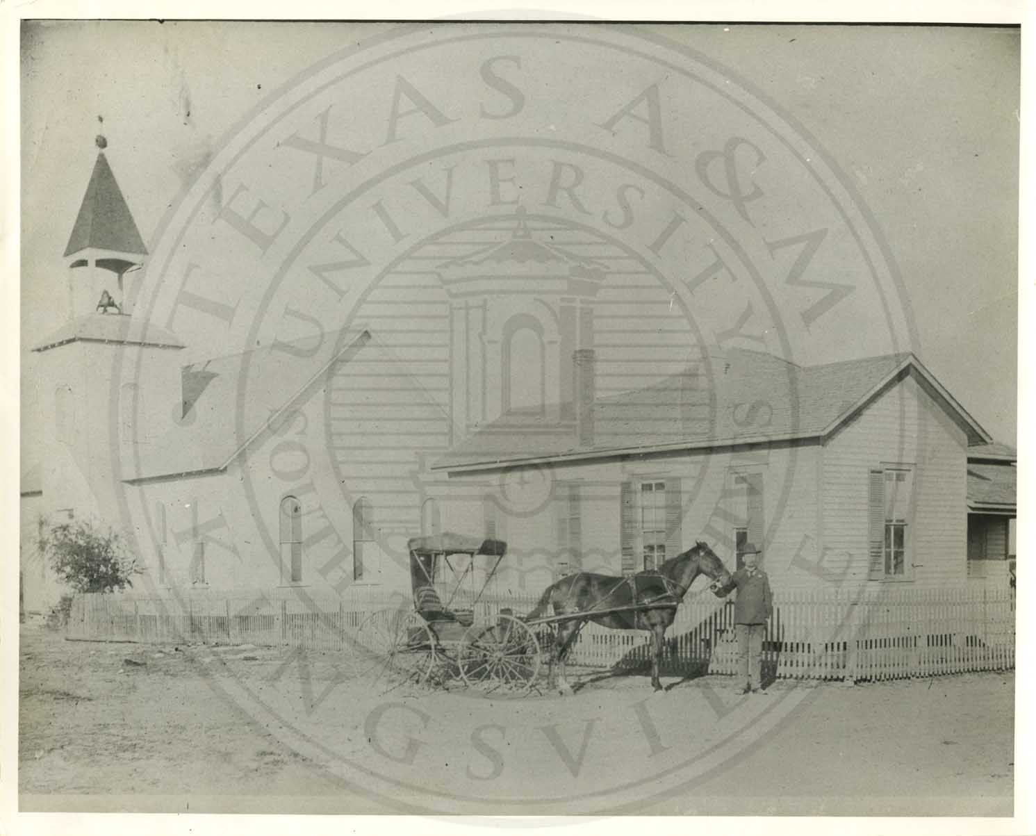 First Methodist Church to be erected in Alice (1904-1906), with horse and buggy |