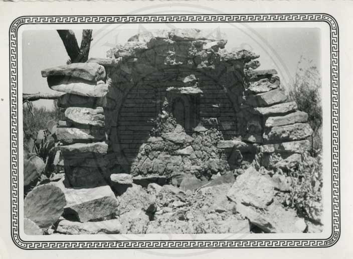 Ruins, Dolores, old spanish ovenbuilt around 1750 out of adobe and rocks, maybe public oven, for there is a row of these structures in various stages of ruin,photo taken 8/1958.