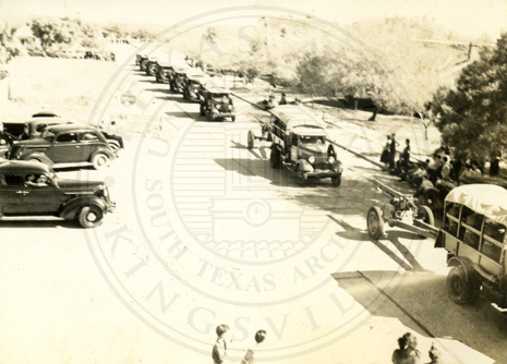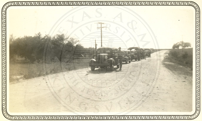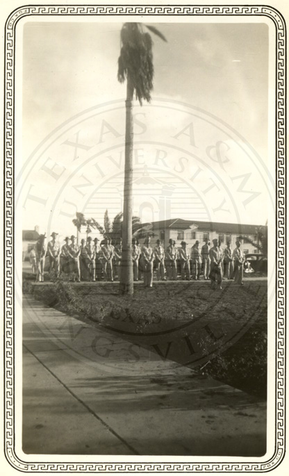 Battery F lined up on Santa Gertudis Street, Kingsville preparing to leave for camp.