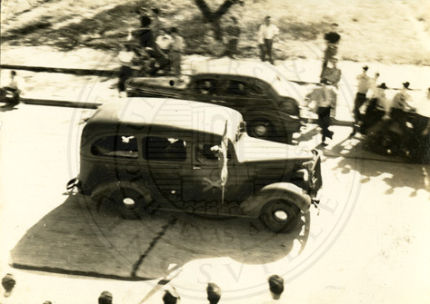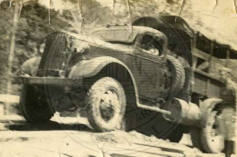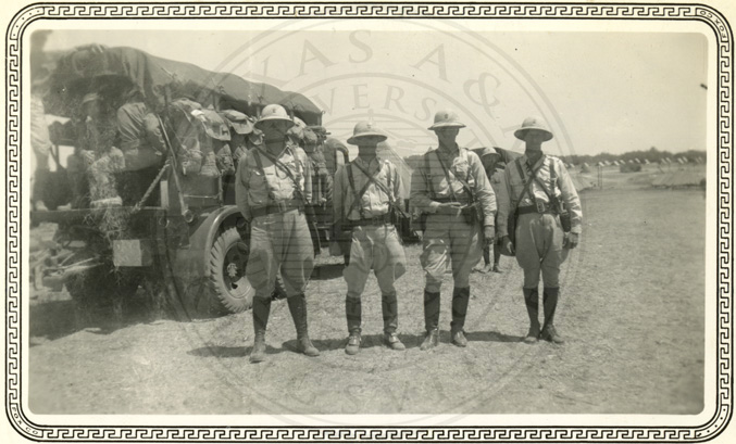 Battery F. officers in front of truck. Includes L.J. Smith, Ben Bailey, Ben Wilson and Hall.