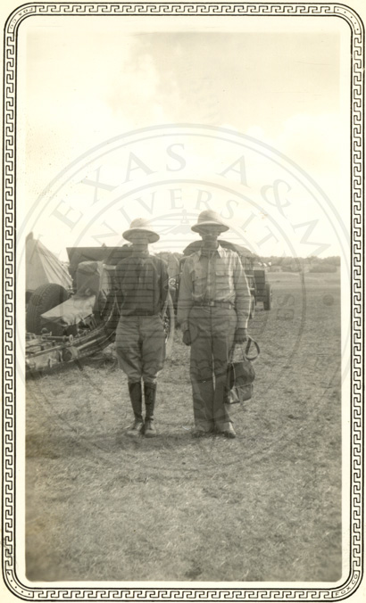 Capt. L.J. Smith with Lt. Ben F. Wilson leading practice of National Guard Unit on the A&I campus. |