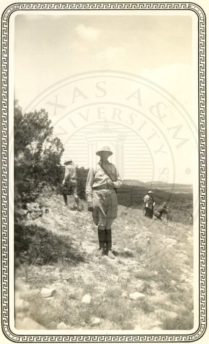 Gunnery practice on A&I campus to the east of Old Administration bldg. Ben Wilson standing and supervising. Wider angle than #15. |