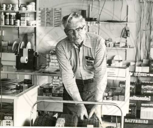 John A. Kieschnick at Kieschnick Tire Store. Bishop, TX.