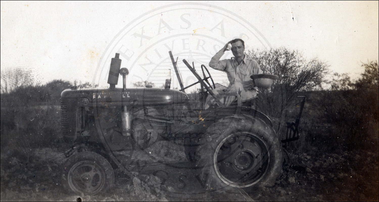 Bruno Wolf Jr. on a tractor on Wolf Ranch, near Laredo, in Webb County, Texas. Sandbox>Archives>Masters>STA Collections Masters>2000>A2000-044 |
