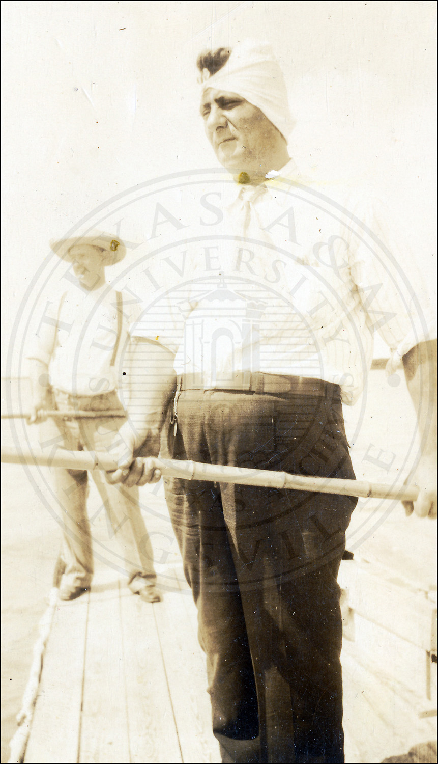 Two unidentified men fishing near the Wolf Ranch, near Laredo, in Webb County, Texas.