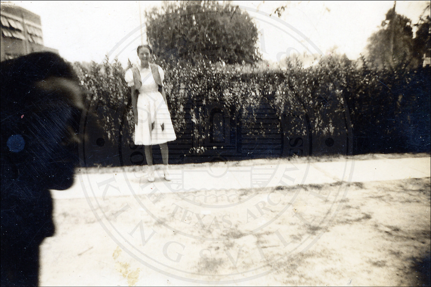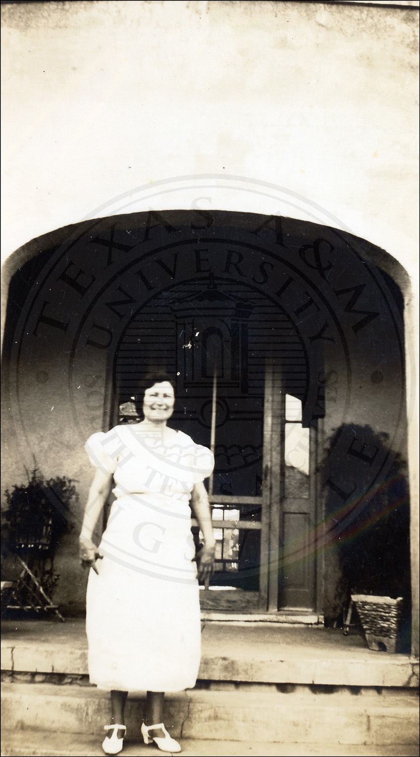 An unidentified woman standing at the Wolf Ranch, near Laredo, in Webb County, Texas.