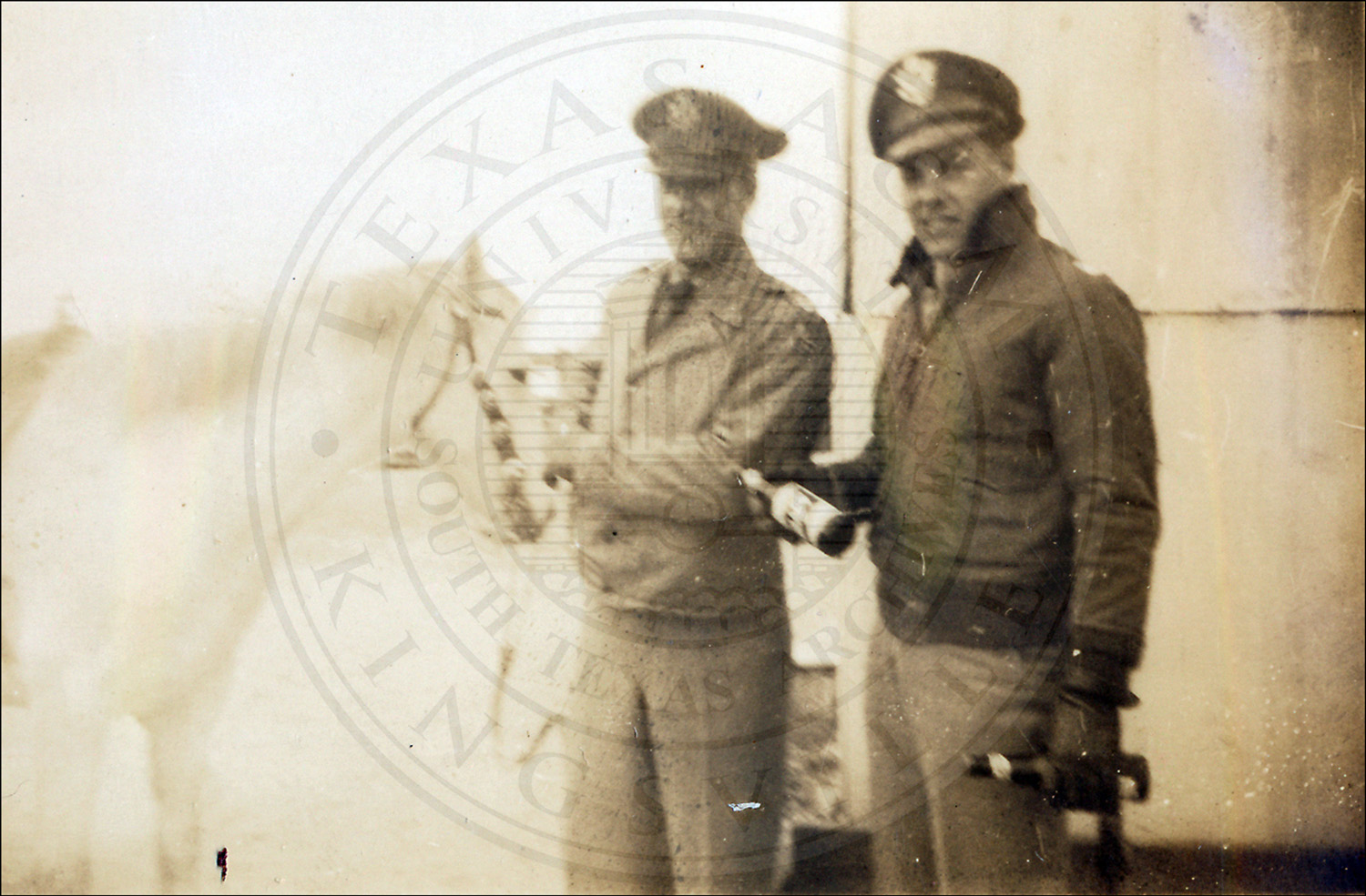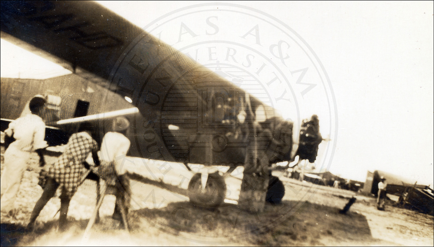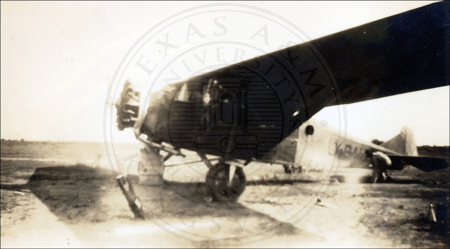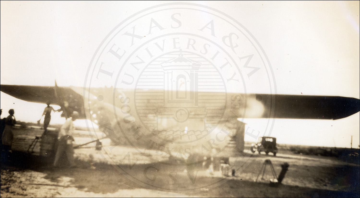 An airplane and crew at an airfield. Laredo, Texas. Sandbox>Archives>Masters>STA Collections Masters>2000>A2000-044 |
