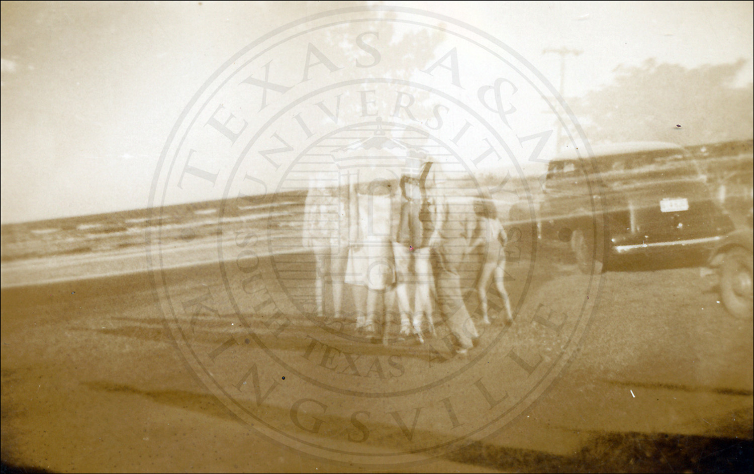 Beach scene with unidentified family. North Beach, Corpus Christi, Nueces County, Texas.