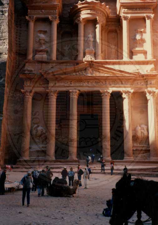 Photo taken in the Syk, entrance to Petra, a historical and archaeological city in southern Jordan. Candace took the shot in the entry way canyon looking into the city. The building in view is the Treasury, a tomb. |
