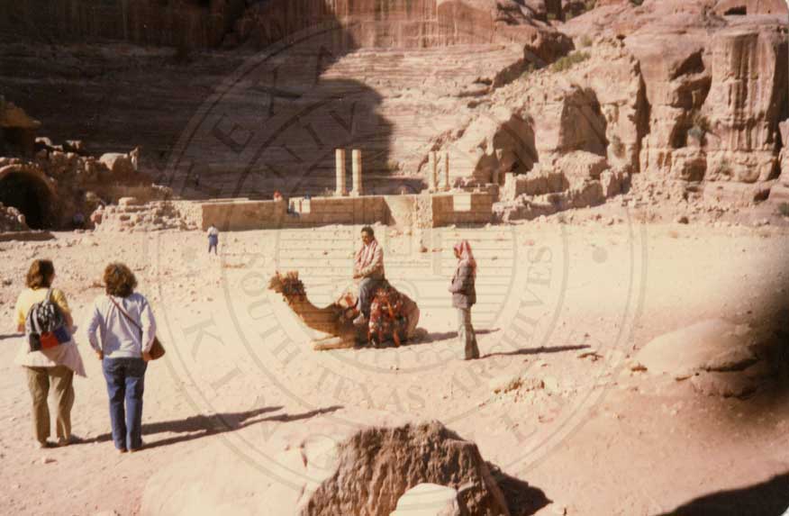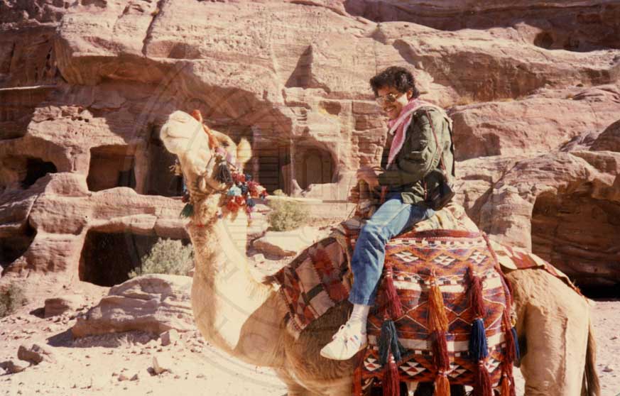 Candace Jefferson's travels in the Middle East, visiting travelers on camel in Petra. |