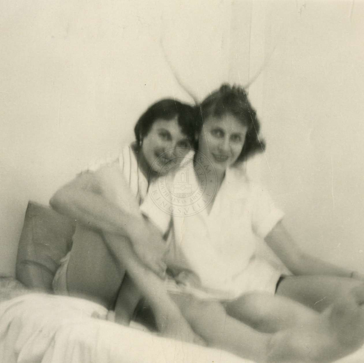 photo of Delores and Jacquie posing on bed
