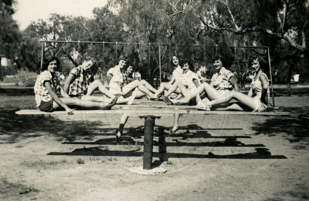 Photo of unknown women on sea saws