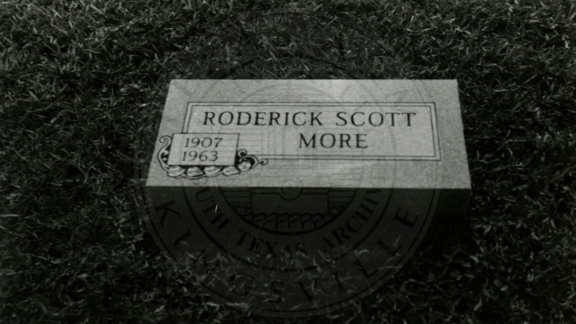 Photo of gravestone markers for Roderick Scott More. 1963. B/W. 3 x 5 inches. |