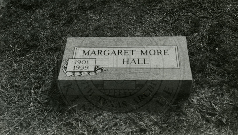 Photo of gravestone markers for Margaret Scott More. 1963. B/W. 3 x 5 inches. |