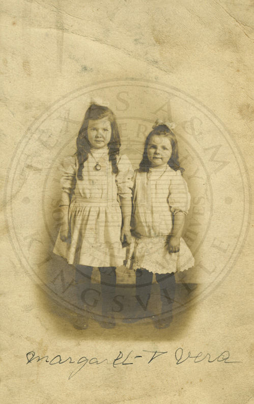 Margaret and Vera [More] two young girls posing for portrait. No date. B/w. 3.25 x 5.5 inches |