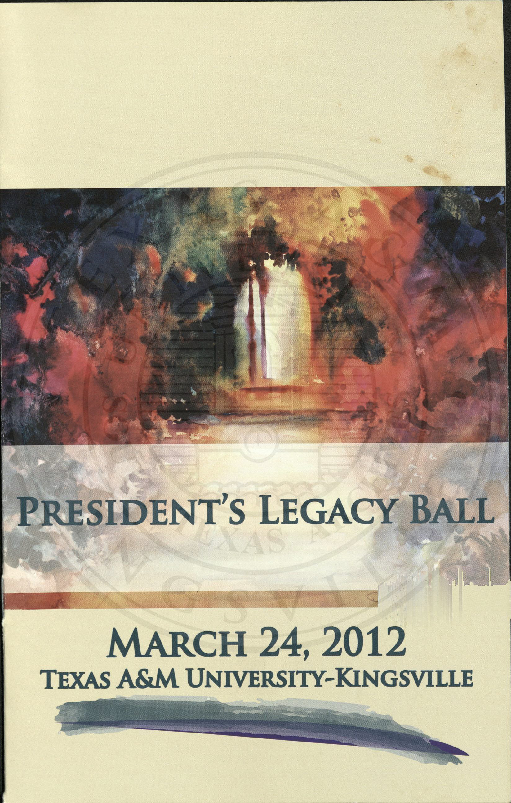 Cover Art for the President's Legacy Ball for Texas A&M University-Kingsville, 2012. Dolores Price painted the water color on the official invitation.
