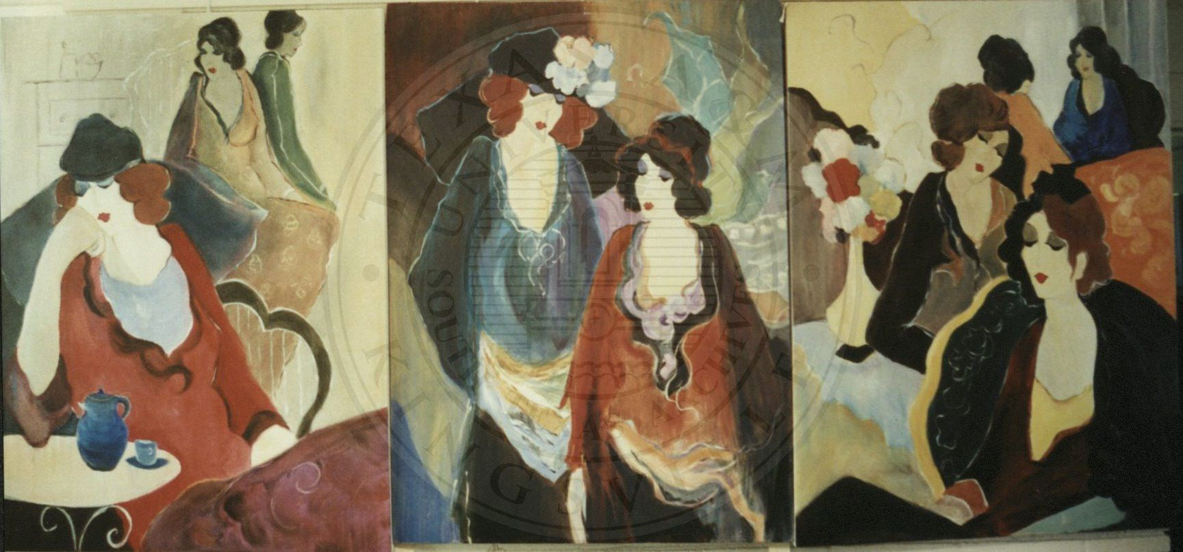 These paintings were in the Sellers Market Tearoom. They were done in the "Tarkey" style. They were sold for $1,800 each. |