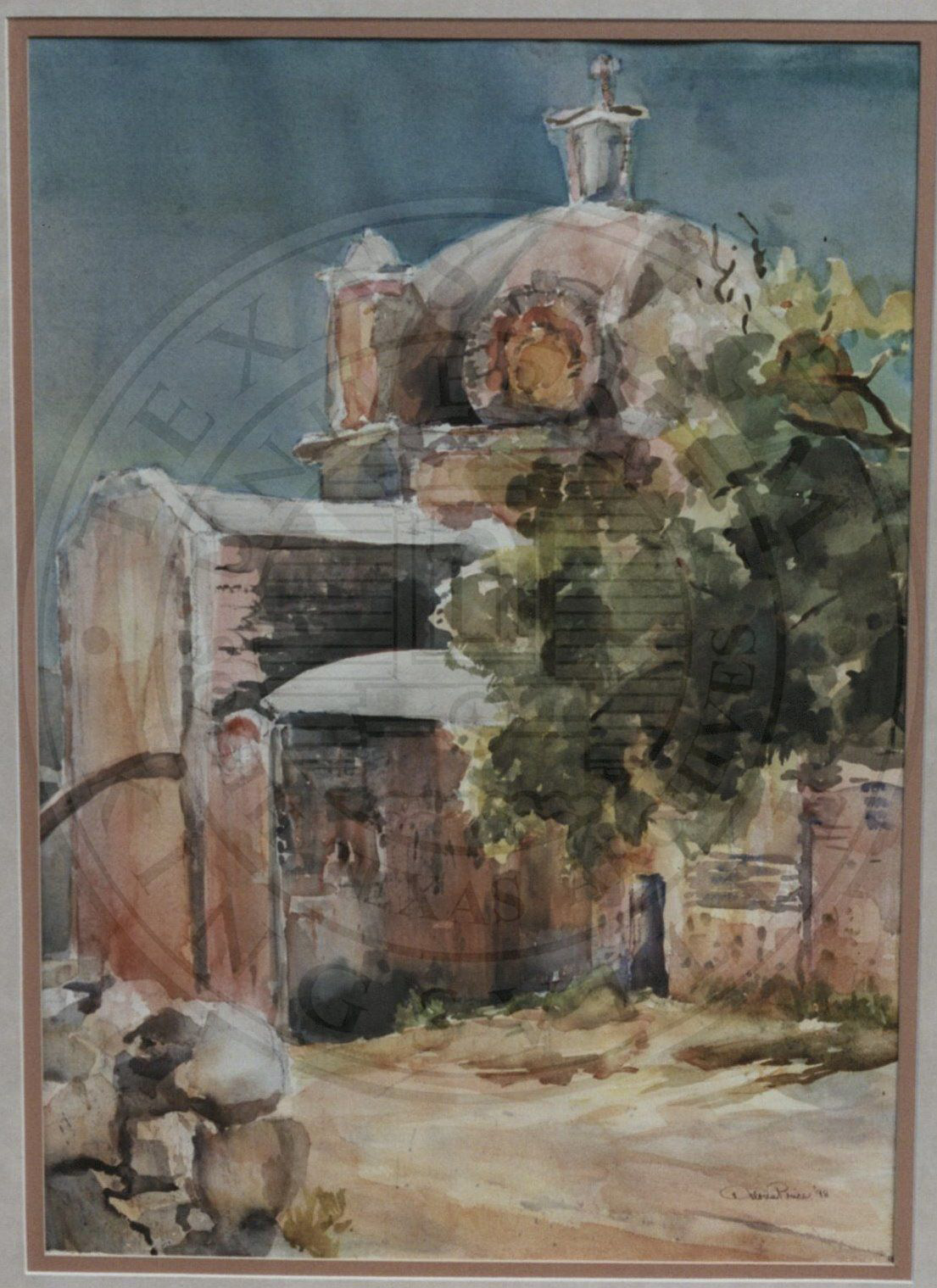 From the Millard Sheets Workshops in 1984. Inspired by her trip to India. |