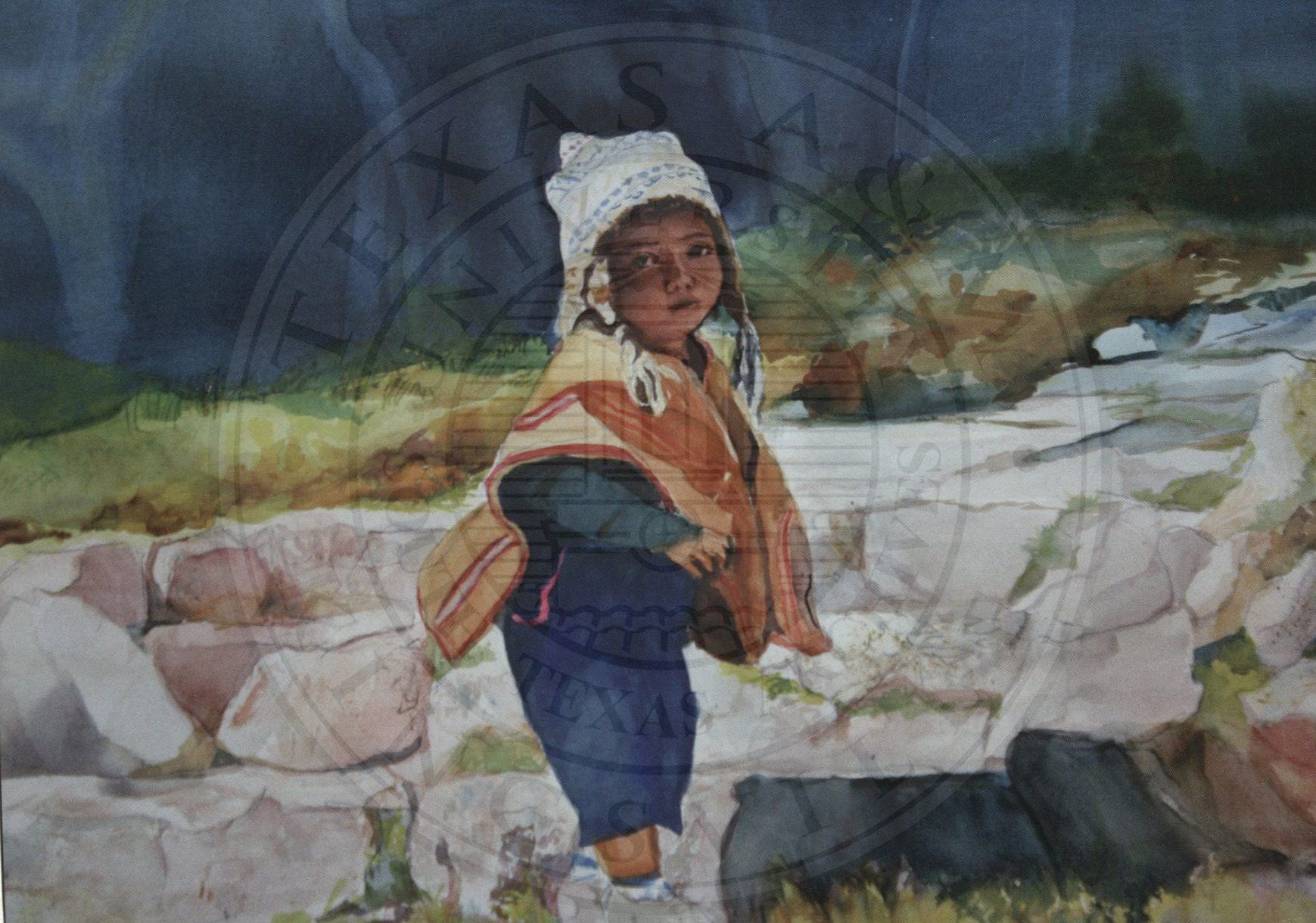 This watercolor is called "Child of Peru." It is from a show called, "Paintings of Peru, Machu Picchu and the Galapagos Islands." |