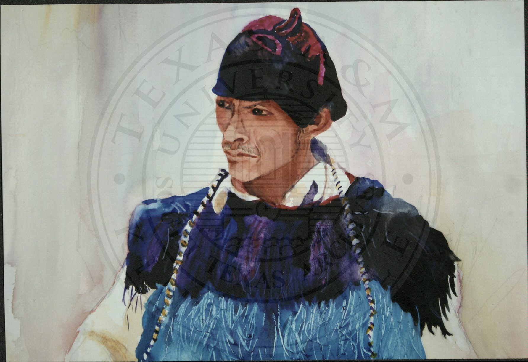 A watercolor of man from Peru. |