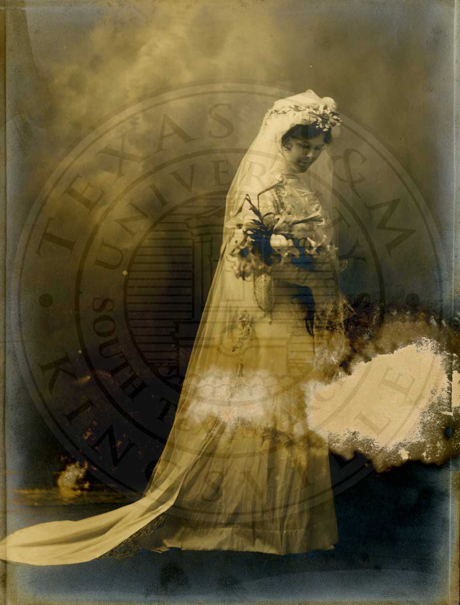 Sue Swither protrait. n.d. b/w. gelatin emulsion. photo by W.D. Jackson photographer. 55. Austin St., Waco, TX. 2.5" x 4" [broken and faded] |