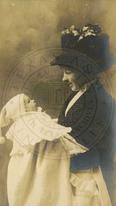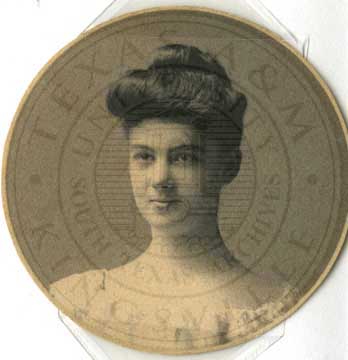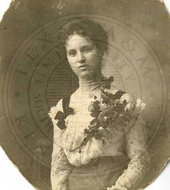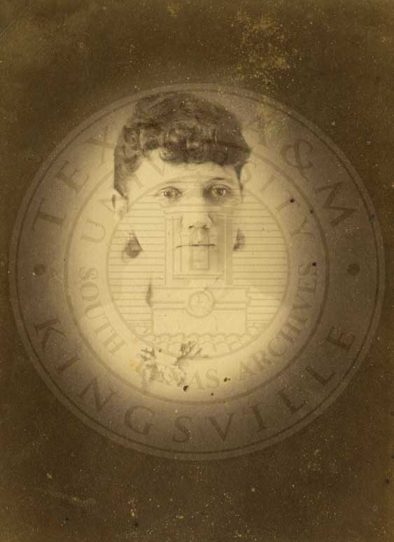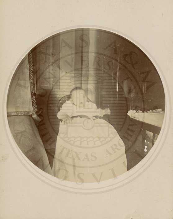 Anna Belle Deace in small portrait. b/w. gelatin emulsion. photo by W.D. Jackson, 55 Austin St., Waco, Texas. 2.5 x 4.25" [yellowed with spots & blotches] |