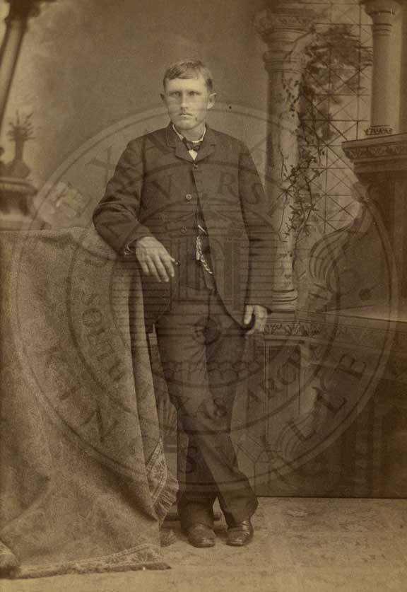 Jesse Walker of Luling, Texas in portrait. n.d. b/w. gelatin emulsion. photo by W.D. Jackson, 55 austin St., Waco, Texas. 2.5 x 4.25" [faded]