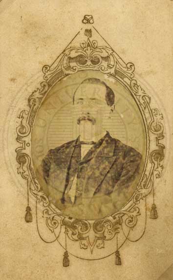 David Jones, grandmother Exum's brother. n.d. photo by A.B. Langford, artist, Jackson, Ten. Carte de vis. Albumin emulsion print. 2.5" x 4" [faded and spotted]