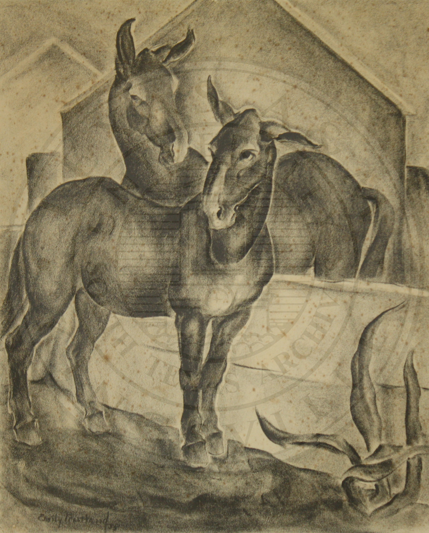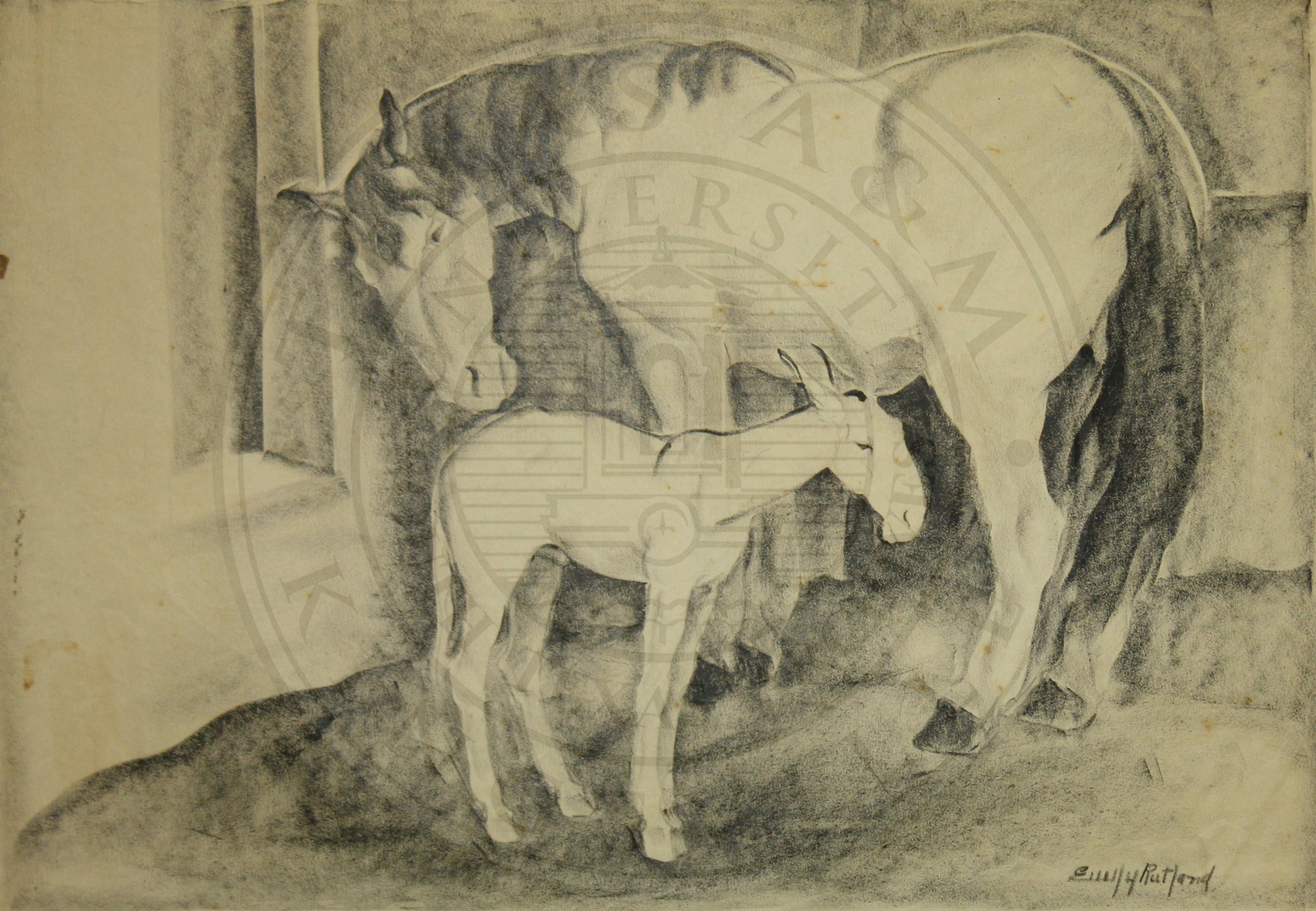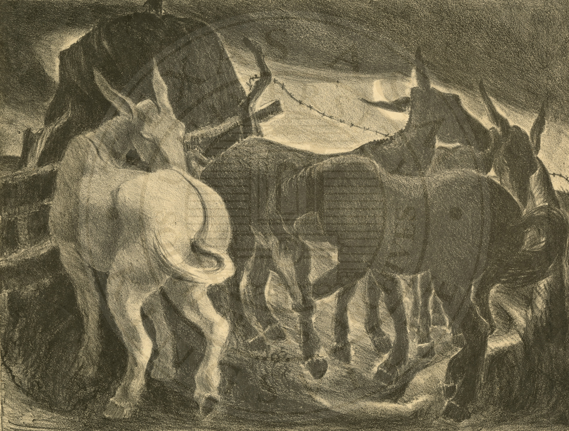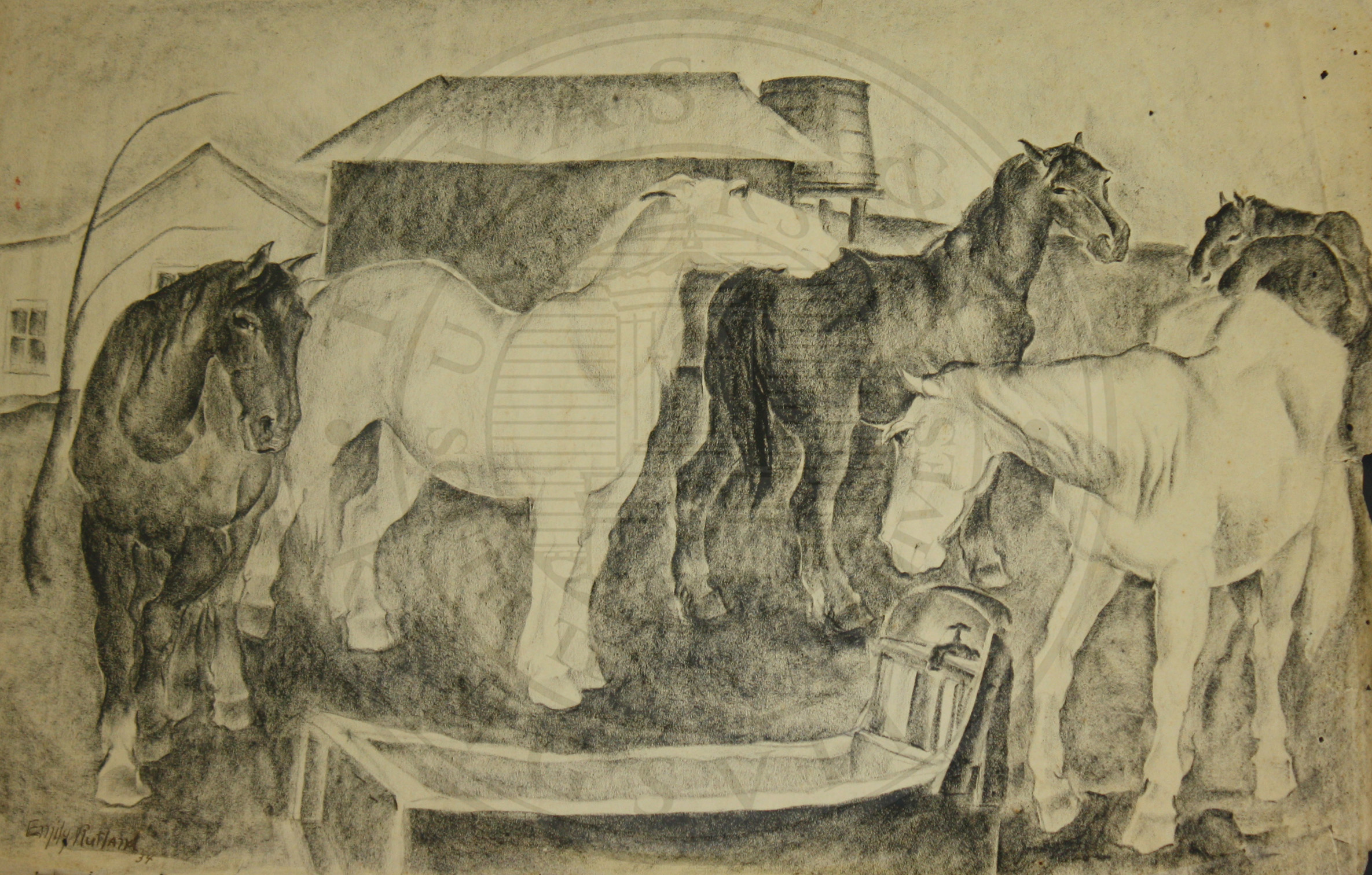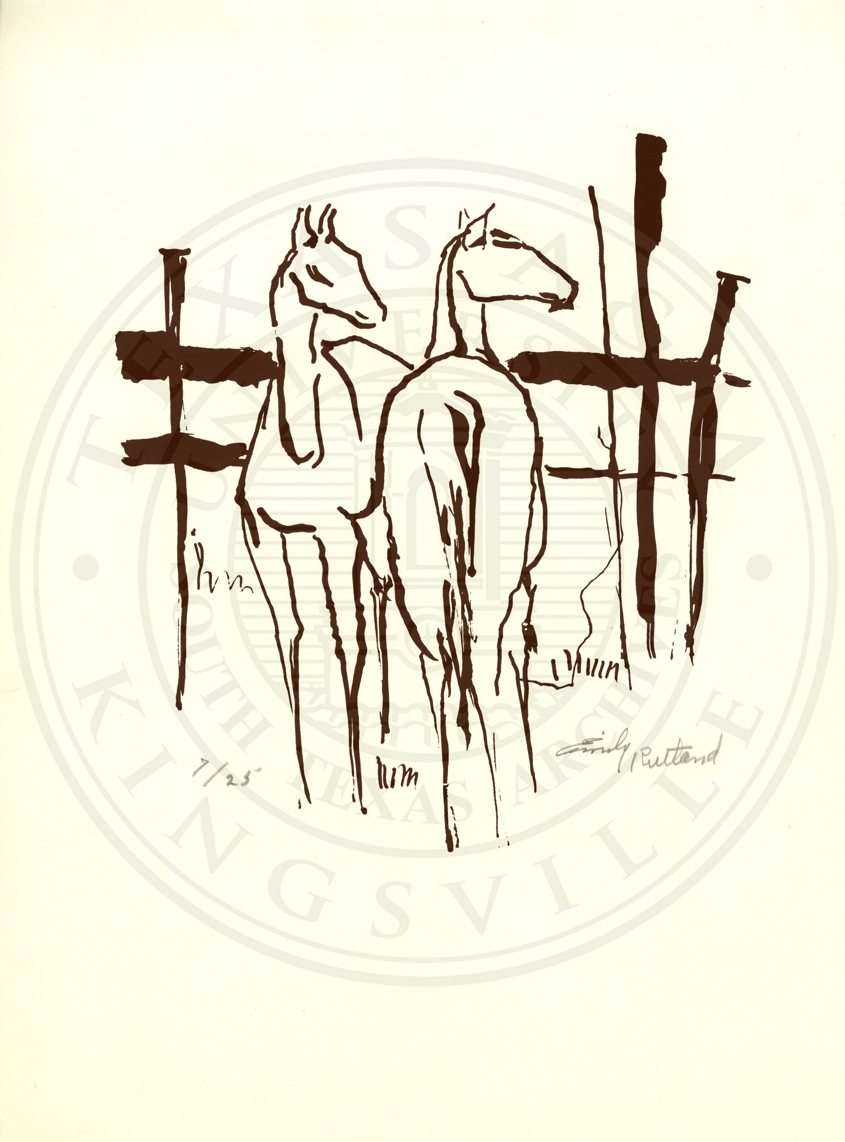 "Horses & fence" by Emily Rutland 7/25 lithograph |