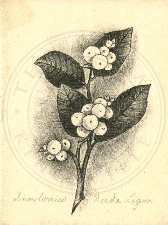 "Snowberries" notecard (inside inscription: "Best wishesfor a Merry Christmas and a Happy New Year") Verda Ligon. |