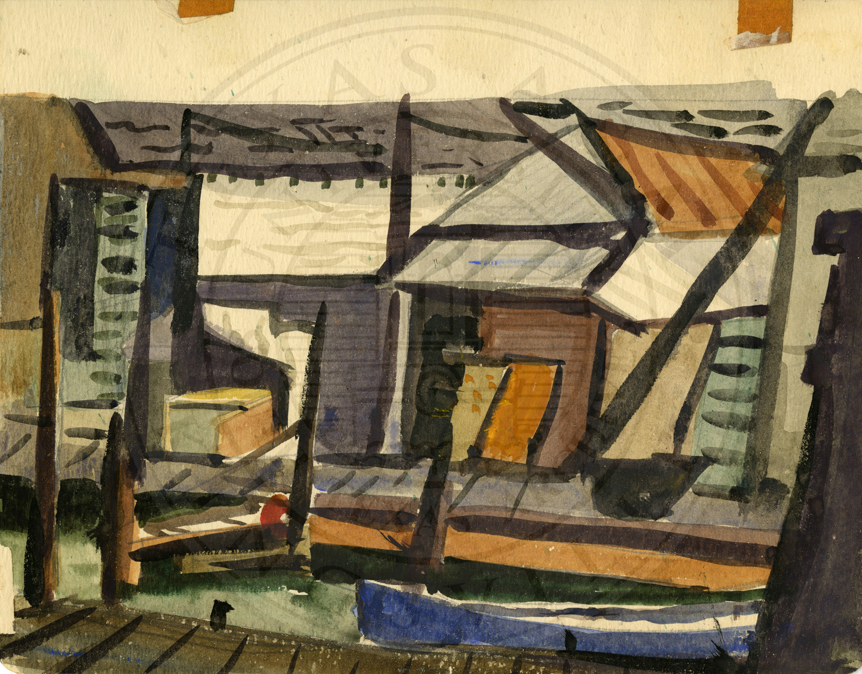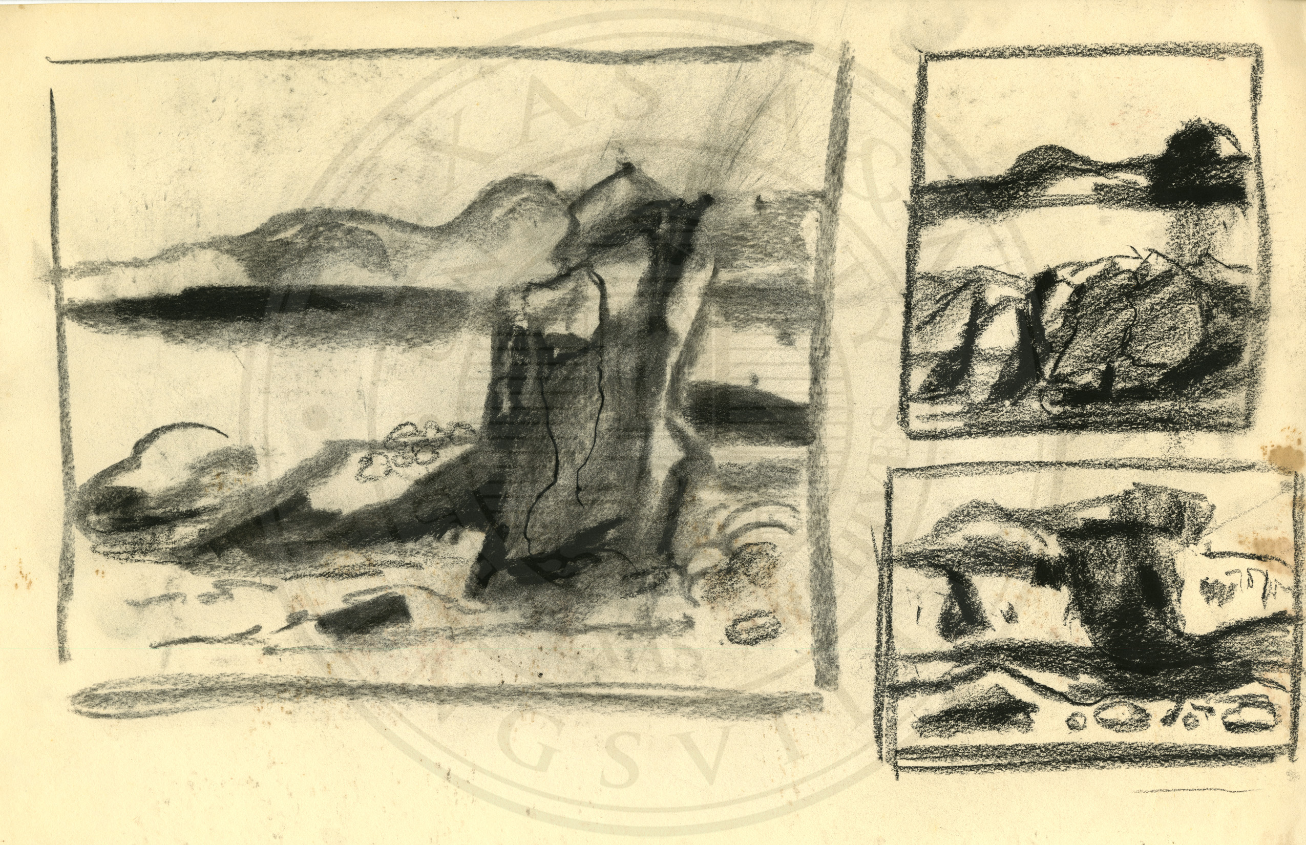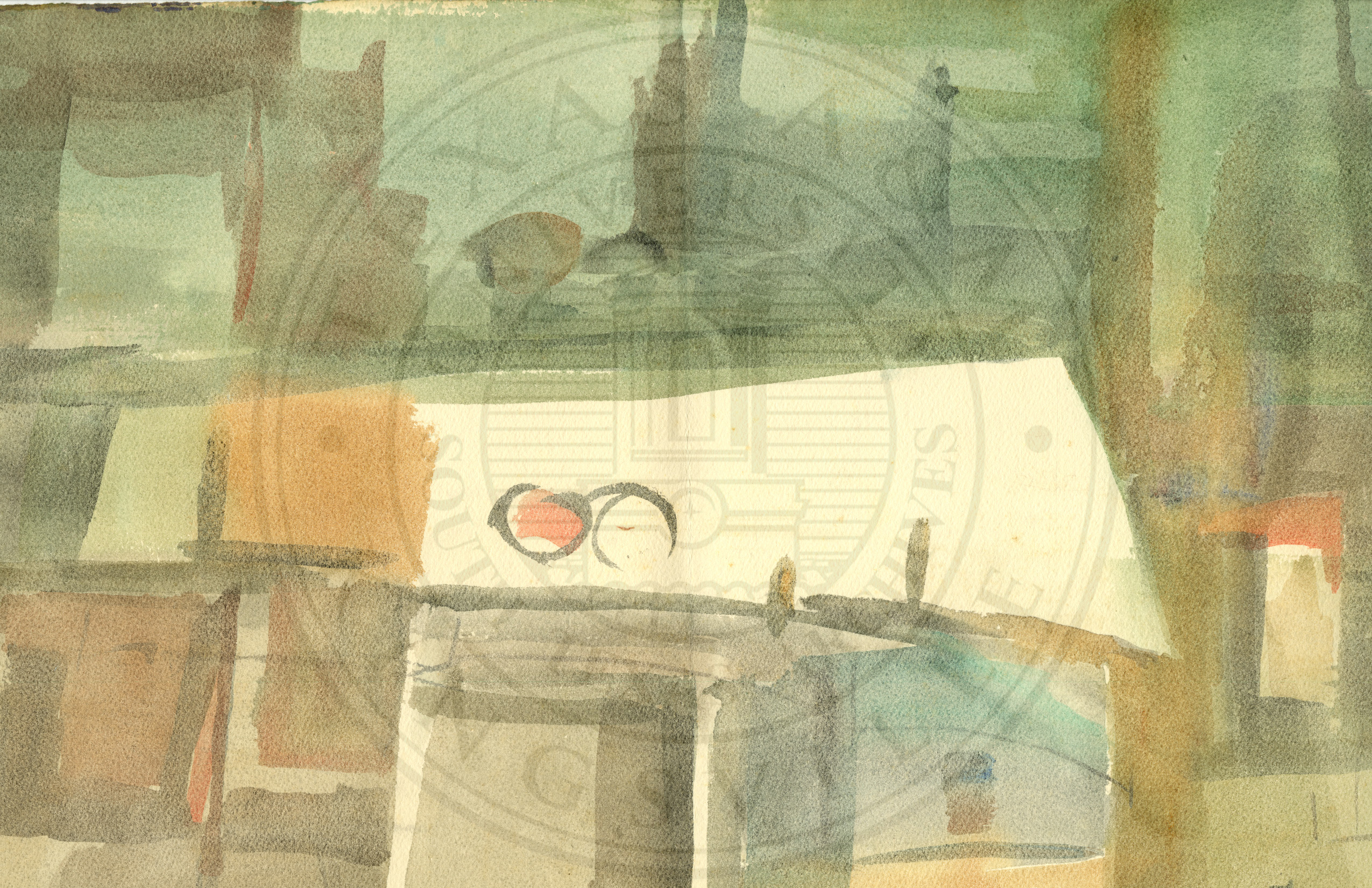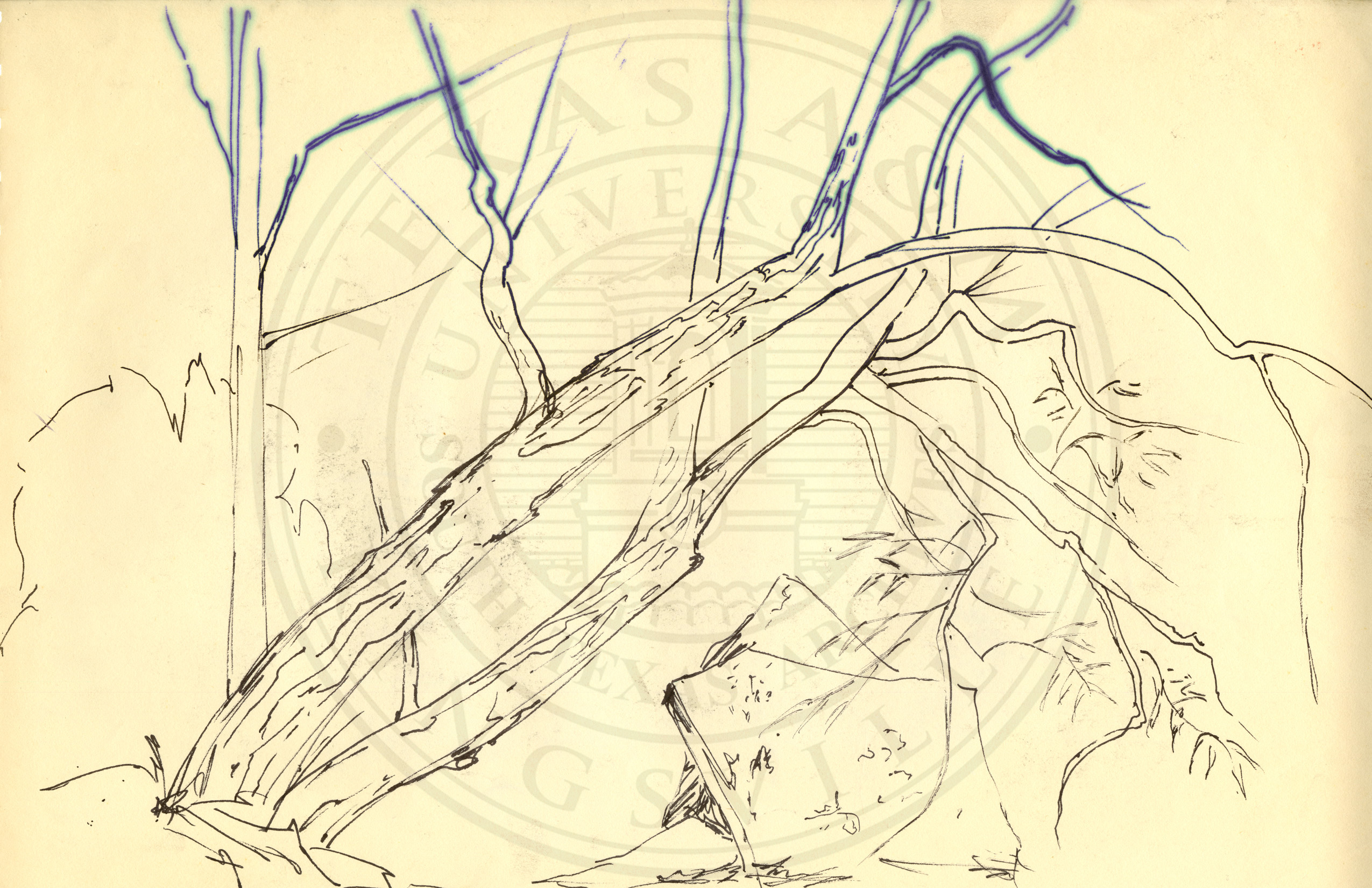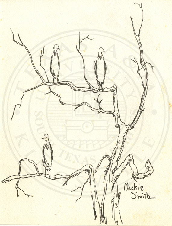 Notecard for exhibit opening by Mackie Smith. pen and ink |
