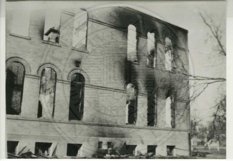Corner of 5th Street & Yoakum building after 1908 fire. |