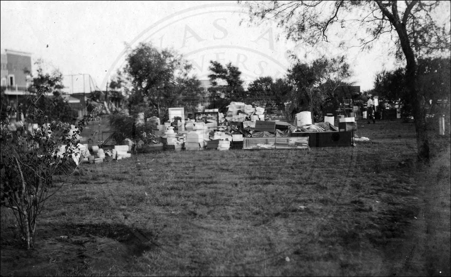 Salvage from the 1908 5th Street fire in Kingsville, TX, sitting in Miller Park. |
