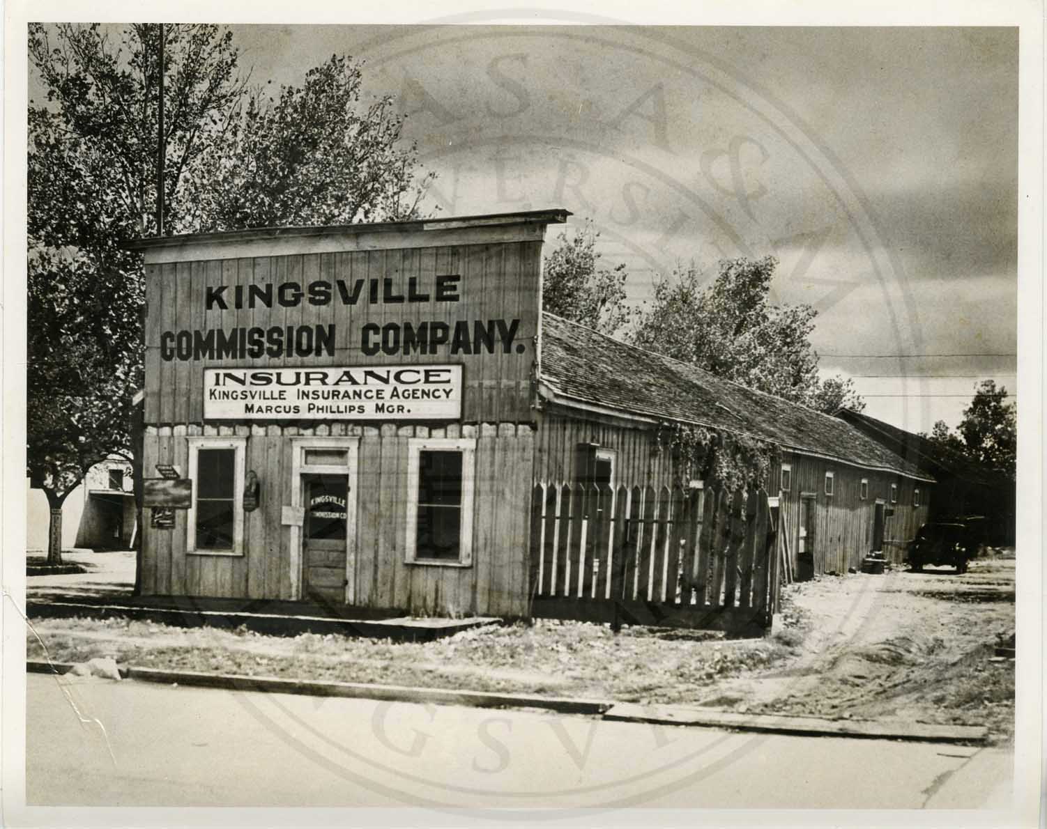 Photo of Kingsville Commission Company, owned by Marcus Phillips, located on Southwest corner of 6th and King Street. |