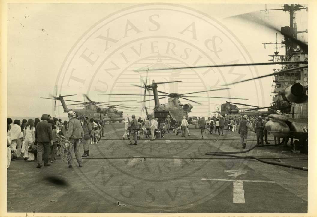 U.S.S. Midway Collection evacuating men, women and children in Operation Frequent Wind. They processed over 1,500 people on April 30, 1975. |