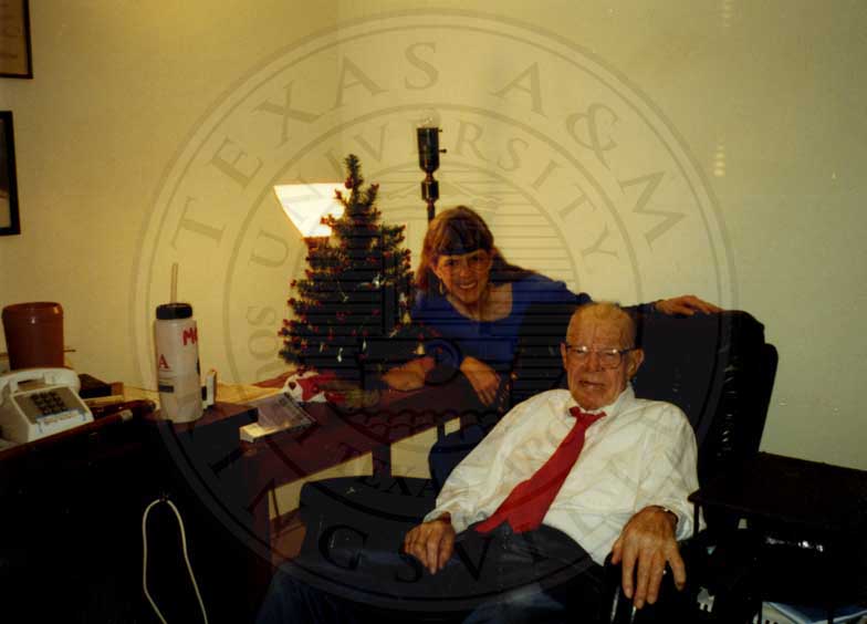 Mr. Monty (Dr. Otis Malvin Montgomery, Journalism professor at Texas A&I during the 1930s and 1940s) with his daughter, Bonnie, Christmas 1966. |