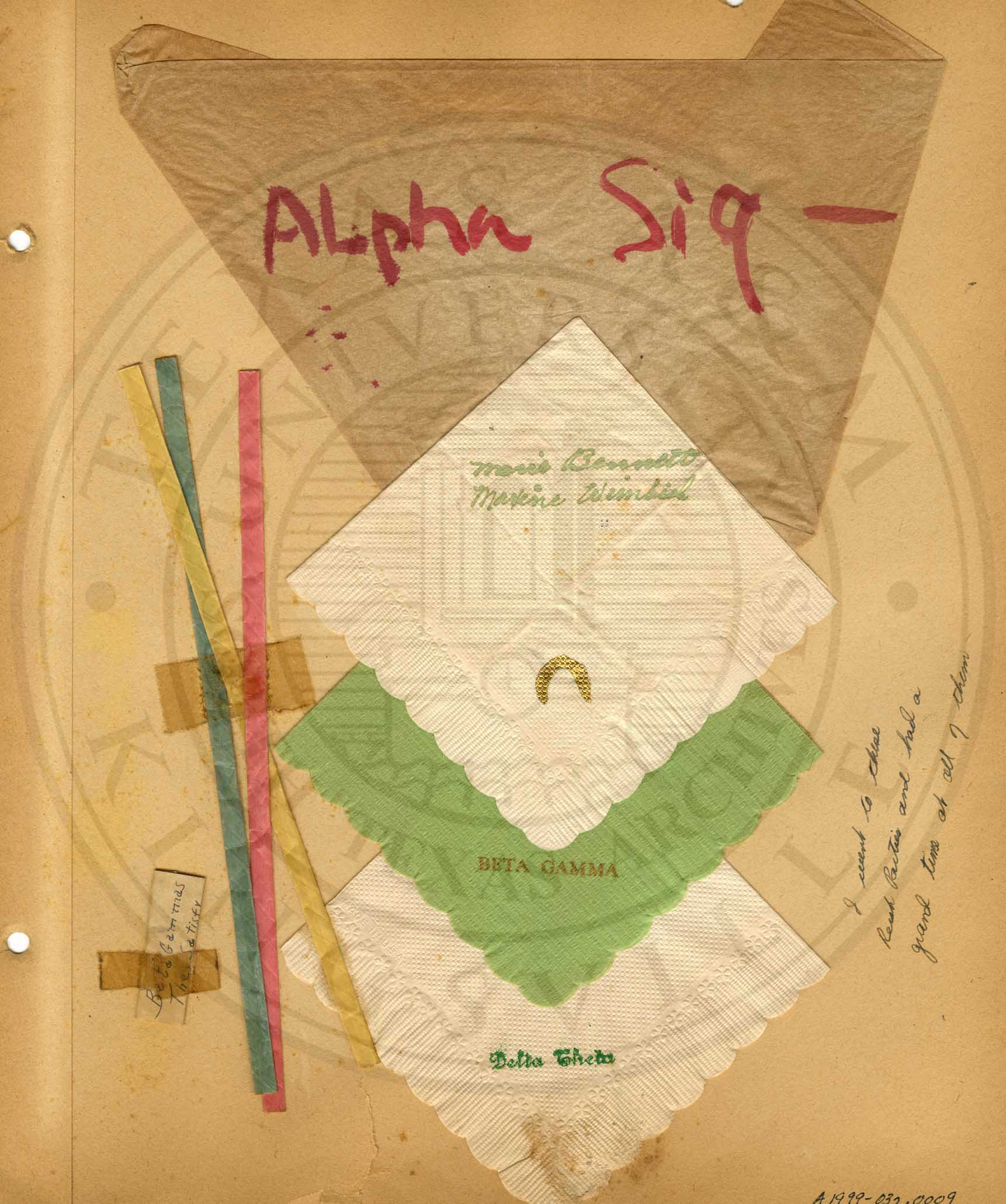 Page 2 of scrapbook, Marie Bennett's scrapbook of her freshman year at Texas College of Arts and Industries, Alpha Sig, "I went to these Rush Parties and had a grand time at all of them." |