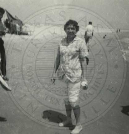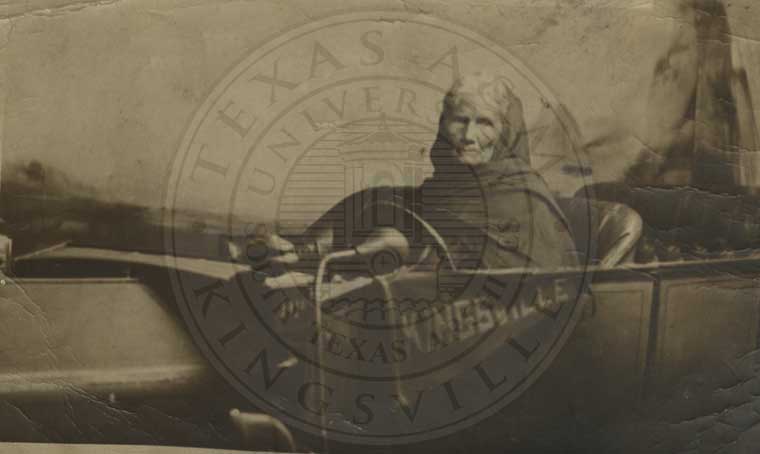 Eva Flores and her co-workers employed at the King Ranch's main house. Eva Garcia Flores is third from the left. They were on their way to a King Rnch baseball game. |