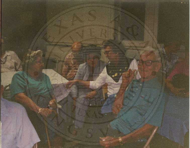 Kingsville County Historical Commission Minutes (meeting), MoPac Depot, Eddie Simons, Ruby Gustavson, Bud Andrews, Peggy Andrews, Emma Van Laningham (Background). |