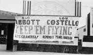 Negative of promotional movie display for the Port Theater in Freeport, Texas. Promotion is, "Keep Em Flying" with Bud Abbott and Lou Costello |