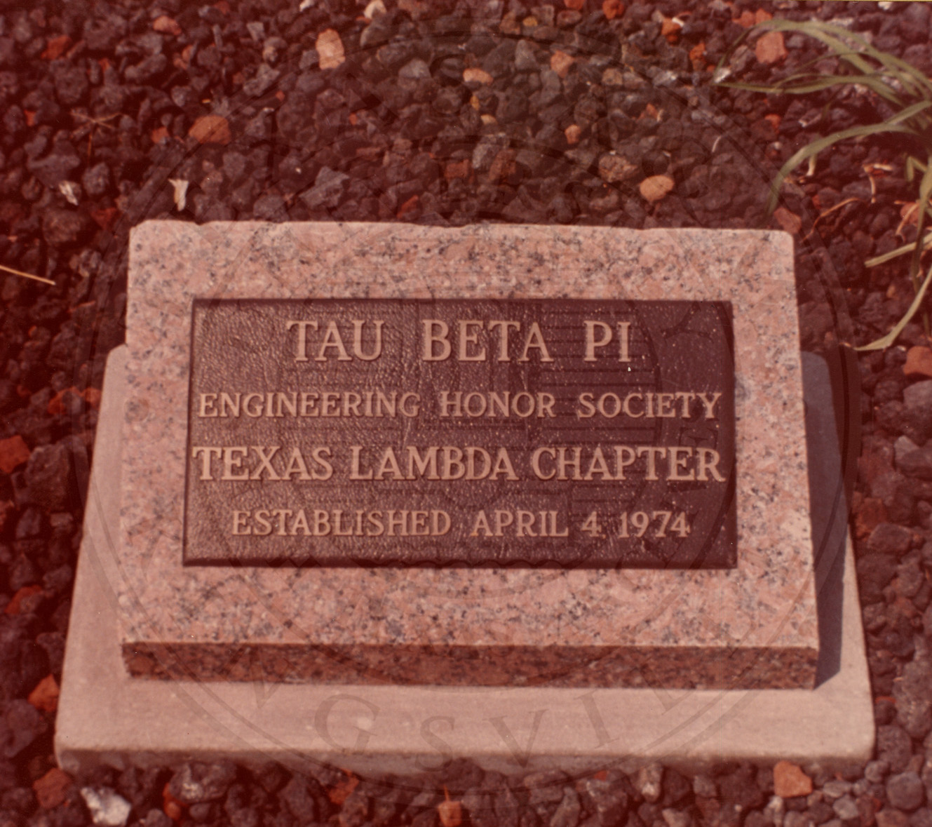 Tau Beta Pi Engineering Honors Society. Texas Lambda Chapter. Established April 4, 1979. Caption "The Tau Beta Pi Association, National Engineering Society was founded at Lehigh University in 1885 by Dr. Edward Higginson Williams Jr. 'to mark in a fitting manner those who have conferred honor upon their Alma Mater by distinguished scholarship and exemplary character as undergraduates in engineering, or by their attainments as alumni in the field of engineering, and to foster a spirit of liberal culture in engineering colleges' ". Page one of scrapbook |