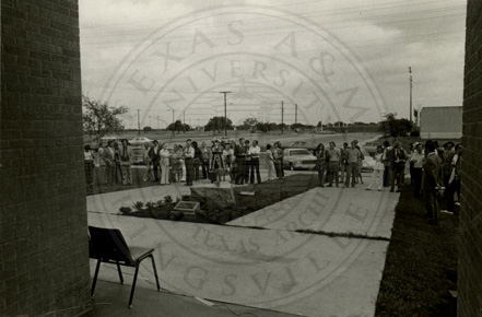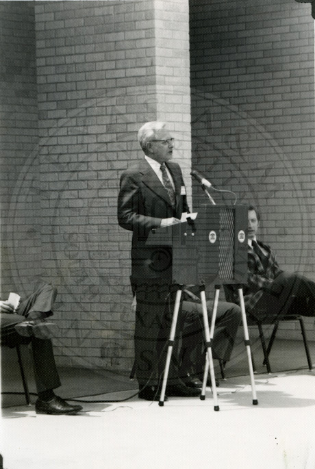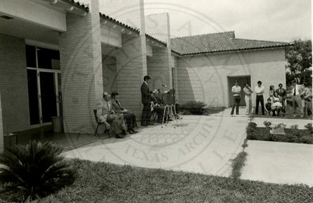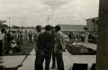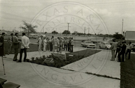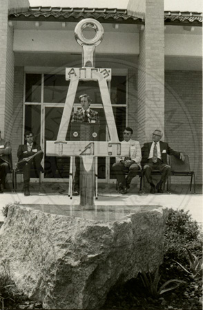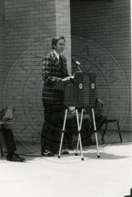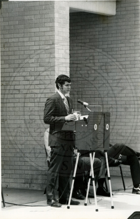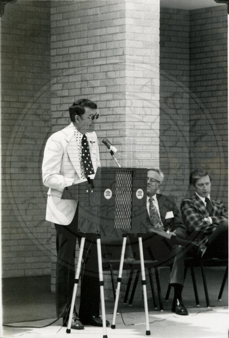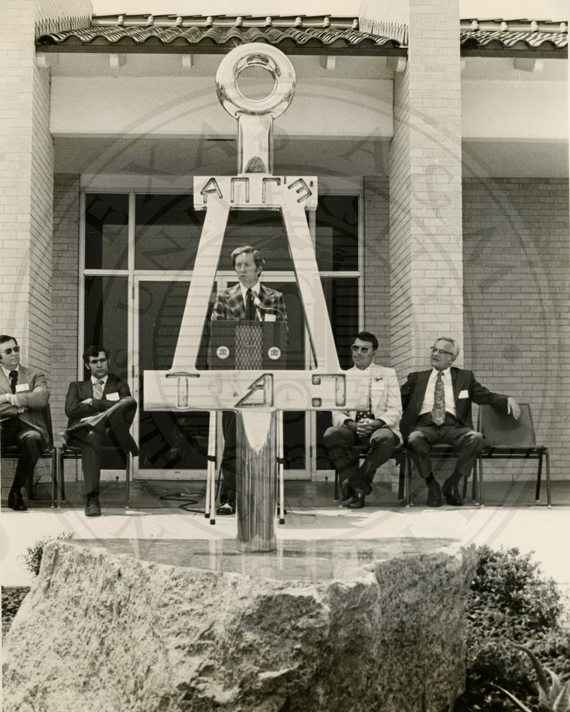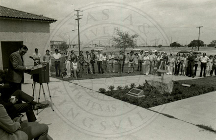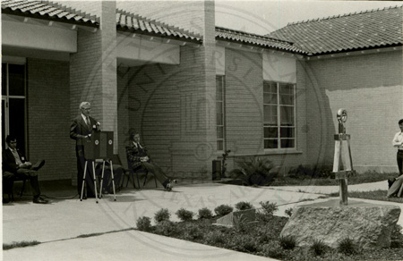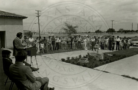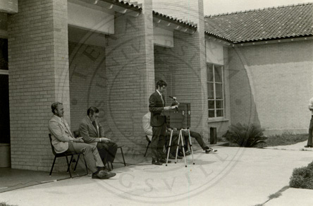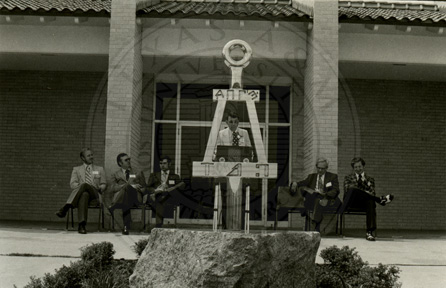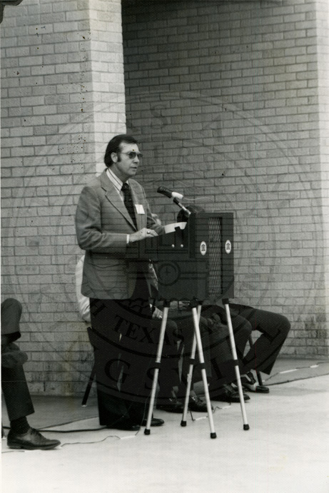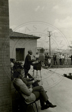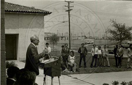 Dr. Gerald Robins, President Texas A&I University, speaking during BENT dedication. Page 6 of scrapbook |
