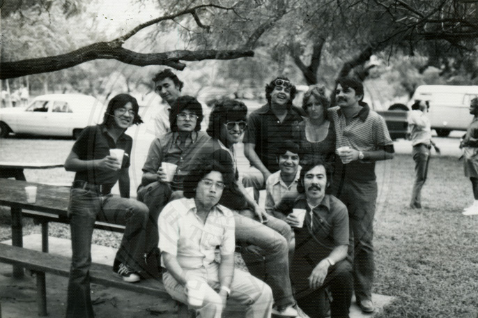 Unknown Engineering students at the Celanese BBQ.Page 11 of scrapbook |
