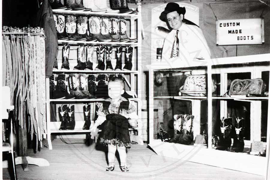 A1989-050.0002Collection: Valley Boot Company Photographs Location: Negative File | Little girl in Valley Boot Co., (photo by Harman & Howel. Mercedes, Texas printed on reverse)