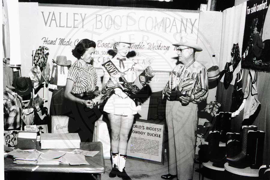 A1989-050.0003Collection: Valley Boot Company Photographs Location: Negative File | Valley Boot Co. interior with a man and 2 ladies "Official photo R.G.V. Livestock Show by Harman L05-1801" printed on  reverse, "SS #140 in pencil on reverse.