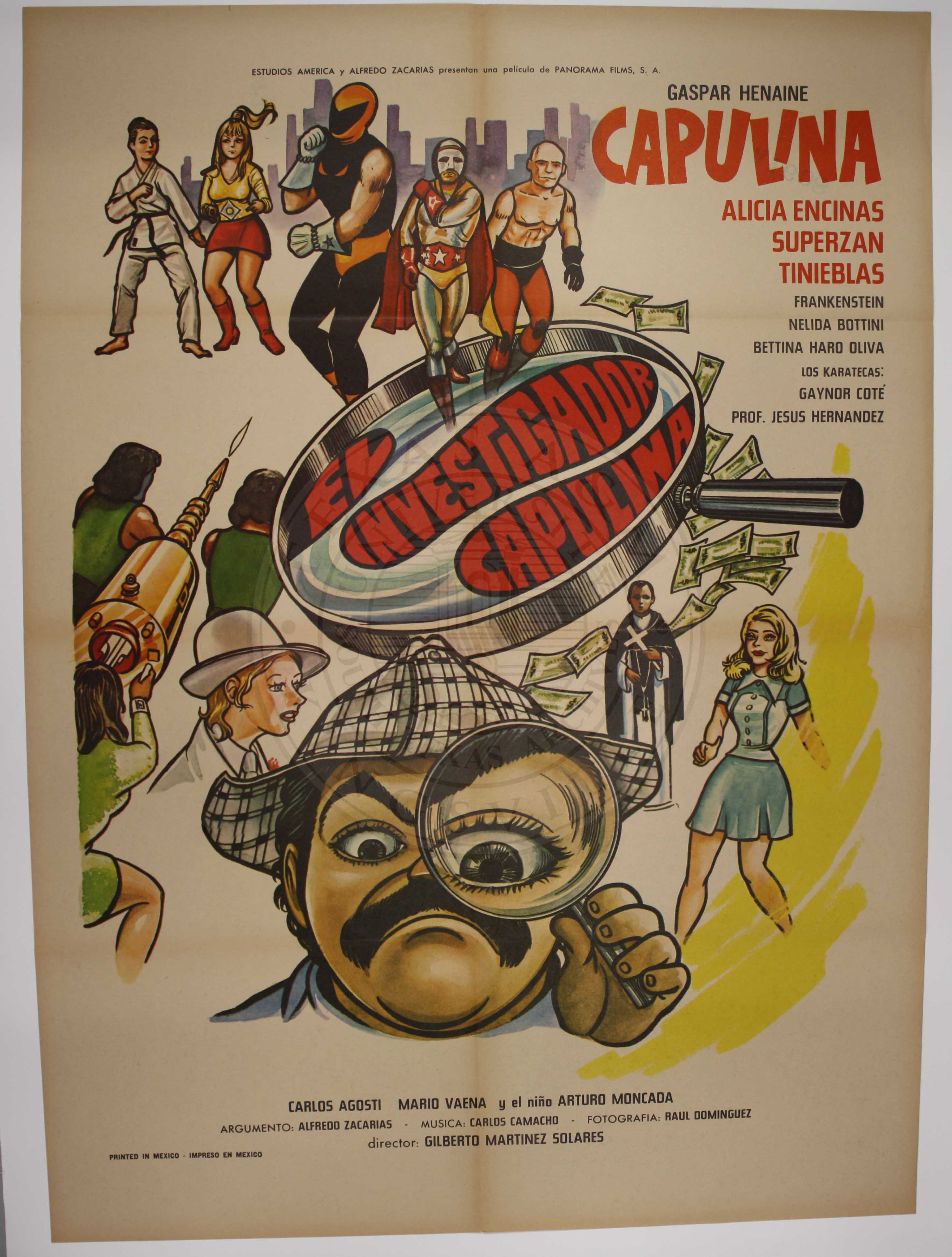 Capulina "El investigador Capulina" (Gaspar Henaine, Alicia Encinas, Superzan, Tinieblas, Frankenstain, Nelida Bottini, Bettina HArd Oliva, Gaynor Cote, Jesús Hernández) |