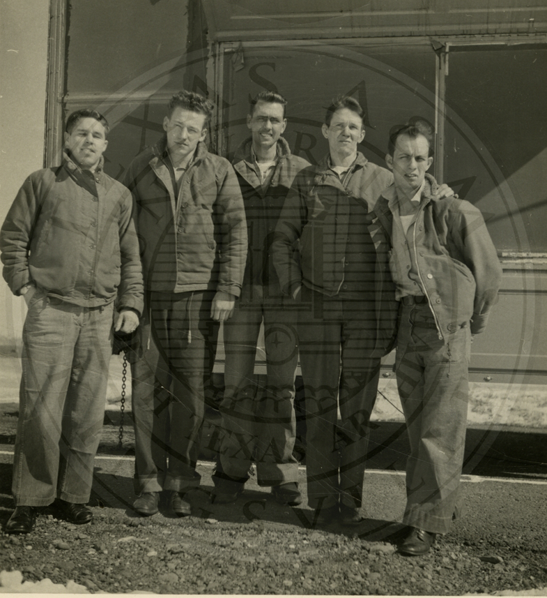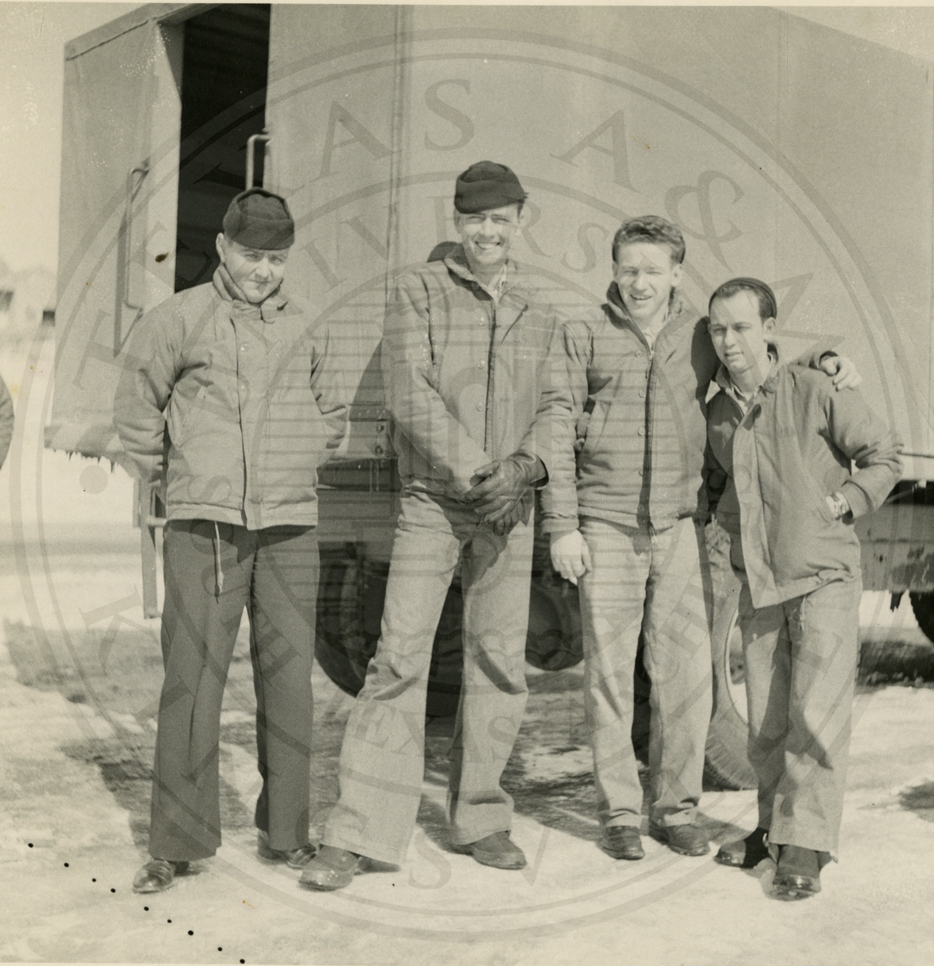 Caption: "(L-R) J. Buchanan, G. Stevenson, W. Brandau, W. Mastrangeli. GCA Unit 15. Argentia, Newfoundland" |