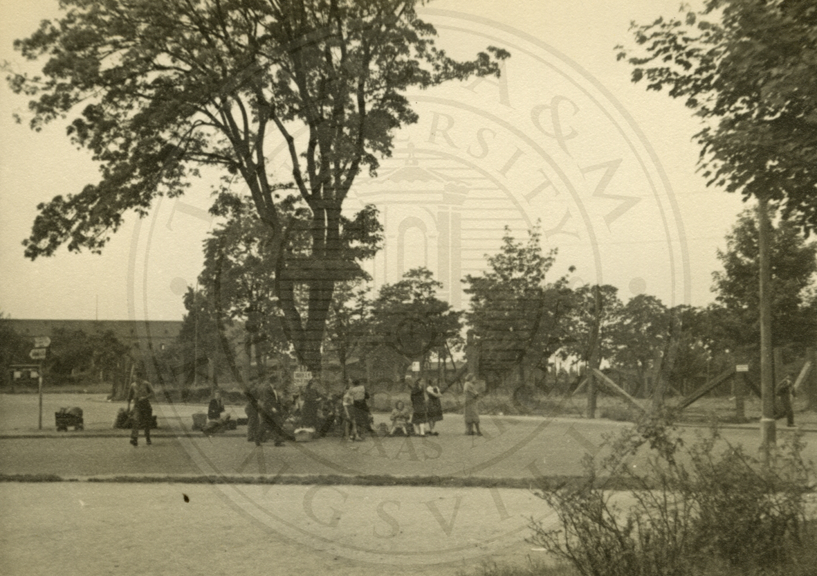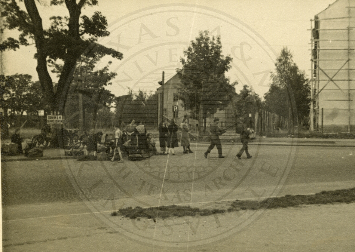 Caption: "And these are our laundry women outside the gate of our billeting area. Our German Bundexes we call them" |