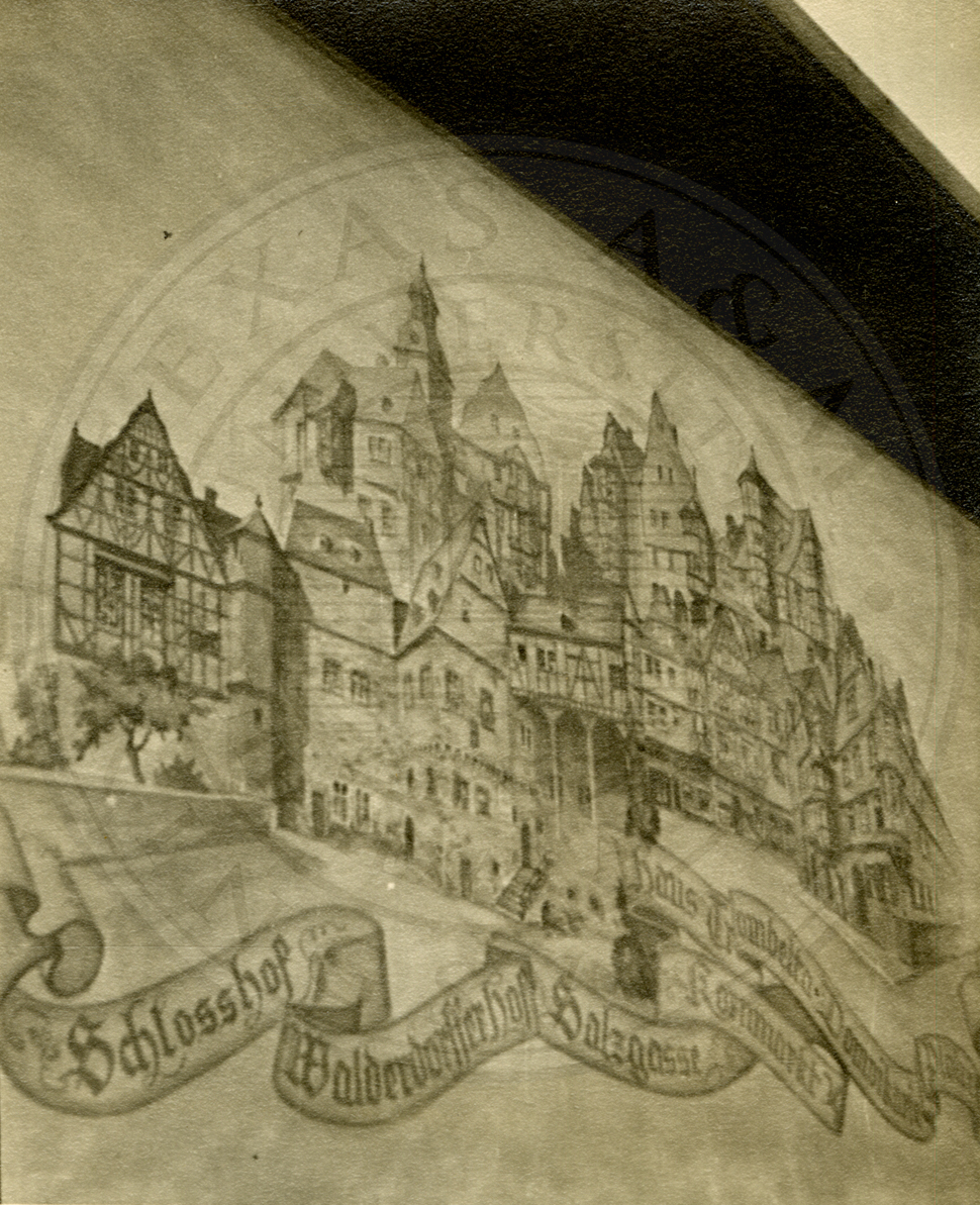Caption on drawing: "Schlosshof, Walderdorfferhoff, Salzgasse" |