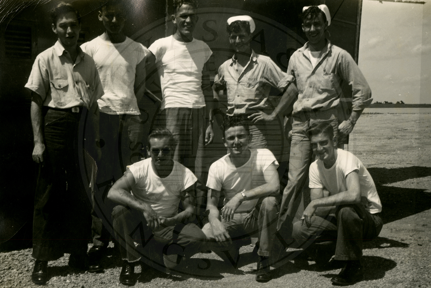 Eight unidentified sailors. Front row is kneeling and the back row is standing |